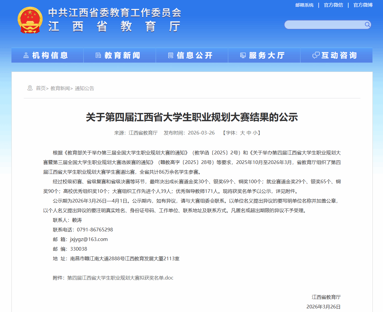 此次获奖彰显了我院“产教融合、赛教一体”育人模式的成效。学院将持续深化职业规划教育,助力学子以科学规划锚定职业方向,实现高质量就业。(图文/柯宇 校对/江文清 审核/方骅)