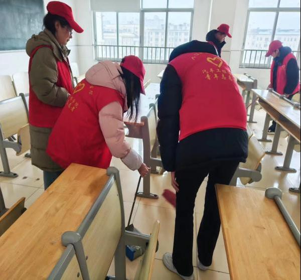 开展“学雷锋做雷锋,爱校荣校我先行”志愿活动。志愿者们对十里校区教学楼内教室、走廊、办公区域等进行了卫生清扫,大家仔细擦拭桌椅,认真将地上的纸屑等杂物捡起,在实践活动中学习和感悟“雷锋精神”。