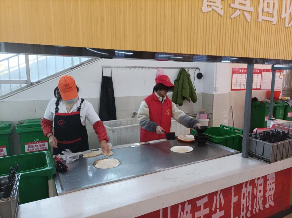 11月30日上午,奇瑞新汽车2401班志愿者们前往馨园食堂,向同学们普及节约粮食的重要性和浪费粮食的危害性,并且帮助阿姨清理饭盘,打扫卫生。