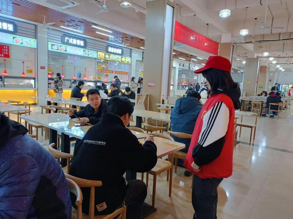 11 月 2 日、11 月 17 日及 12 月 7 日,馨园食堂里活跃着青春汽院服务队志愿者们的身影。他们以四人一小组,化身 “文明劝导员”,向就餐人员宣传光盘行动的重要性。“亲,按需打饭哦,拒绝浪费!” 他们的温馨提醒,让就餐人员纷纷响应。他们用行动诠释着节约的美德,让每一餐都成为文明的体现。