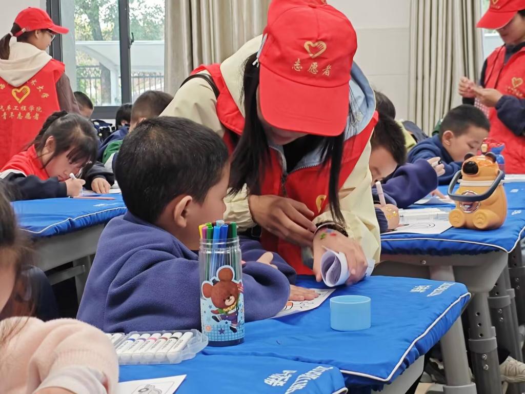 活动当天,宣讲人康惠琳同学通过生动有趣的讲解,向小朋友们介绍了志愿者的角色、职责以及志愿服务为社会带来的积极影响。为加深体验与参与感,服务队成员设置了“我心中的车子”为主题的绘画互动环节。孩子们通过发挥想象力,用画笔描绘出各式各样的车辆,使现场气氛热烈;志愿者们为鼓励孩子们的积极性,给他们准备了可爱的小贴纸作为奖励,一度将现场氛围推向了高潮。